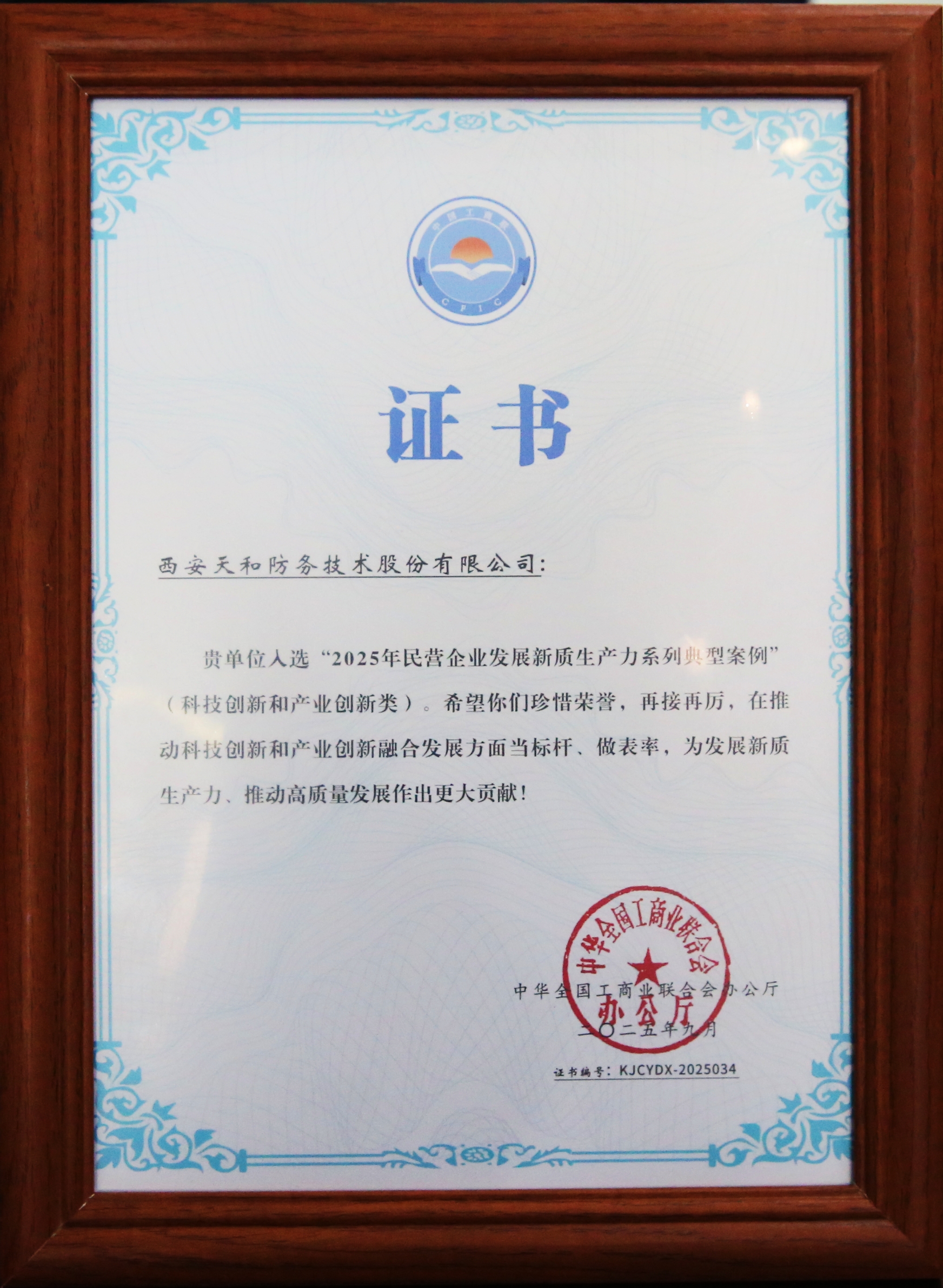天和防務(wù)入選“2025年民營(yíng)企業(yè)發(fā)展新質(zhì)生產(chǎn)力系列典型案例”